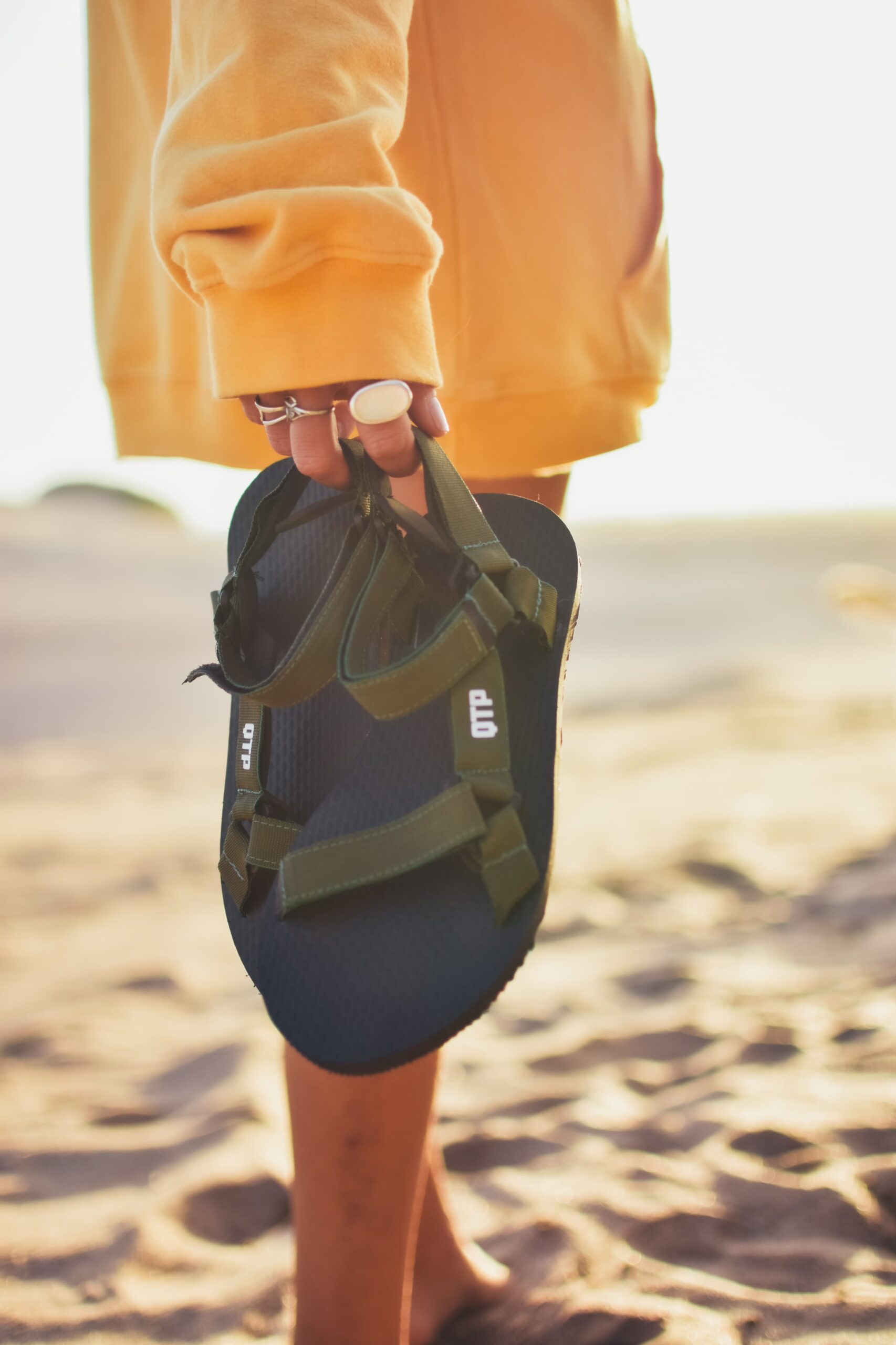 • Tiras de lona resistentes con abrojo en empeine y tobillo, ajustables para un